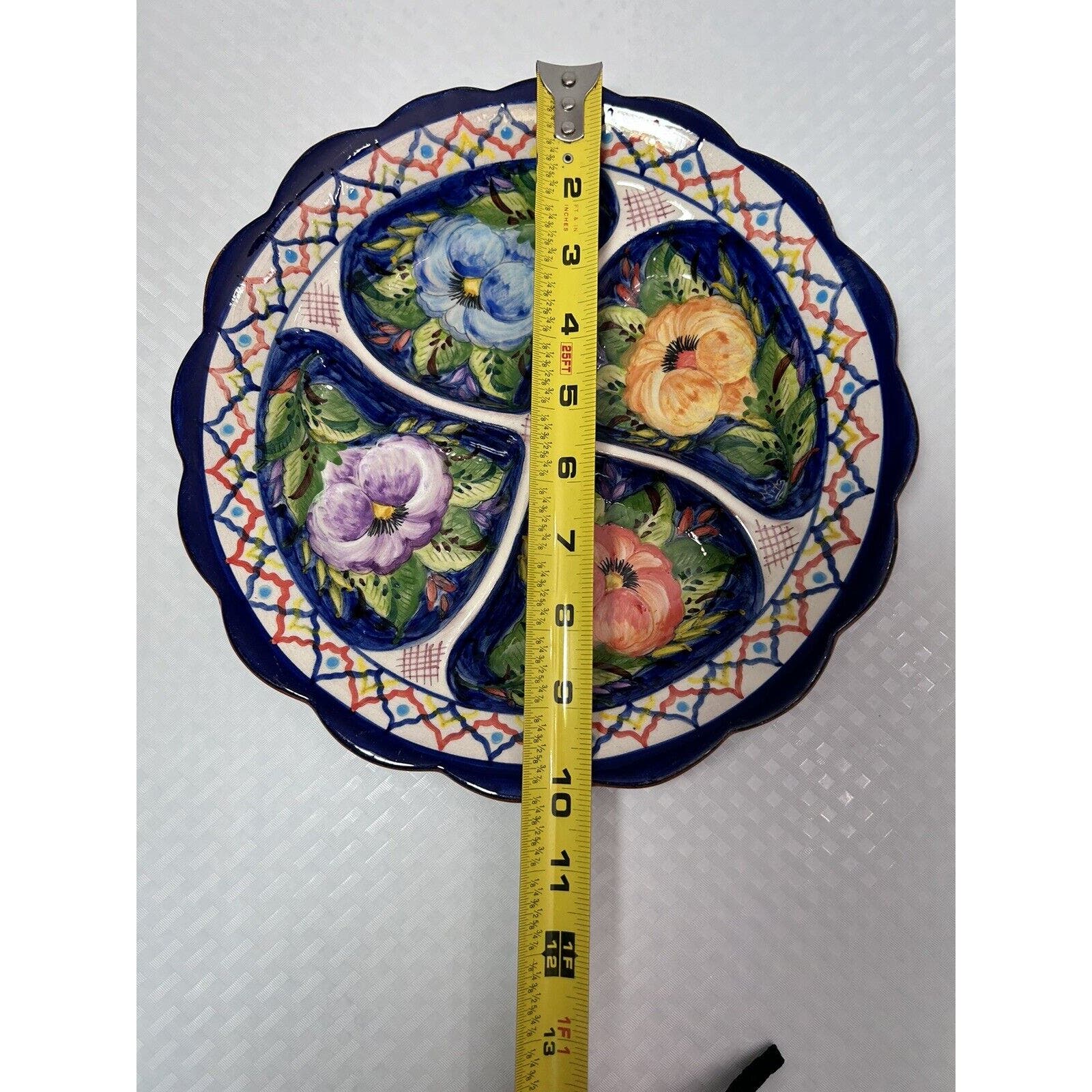 Vintage Floral Hand Painted Divided Serving Pottery Tray Made in Portugal